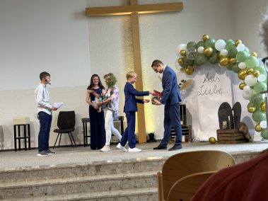 Am Sonntag, den 15. Juni 2025, fand mein Abschlussgottesdienst des Biblischen Unterrichts statt – ein ganz besonderer Tag für mich und die beiden anderen Absolventen Erik Jama und Ella Gobel. Es war ein wunderschöner und zugleich aufregender Tag, den ich so schnell nicht vergessen werde.