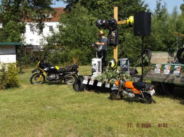 Mittwoch, den 14.06.2023, hatten wir locker angefangen, benötigtes Equipment aus der Bikerhütte in Almena einzuladen und auf dem Hof Senke unterzubringen. Am Donnerstag wurde die Bühne für die Band, bestehend aus zwei alten Traktoranhängern von Heinrich Senke, in die richtige Stellung geschoben und verkeilt. Eine erste Besprechung vor Ort wurde durchgeführt.