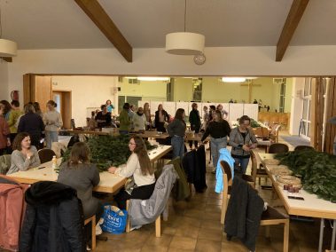 Um 18 Uhr gab es eine Begrüßung, gefolgt von einer kleinen Andacht. Diese hat ermutigt, sich an Maria, der Mutter Jesu, zu orientieren, die am Anfang ihrer Schwangerschaft zu ihrer Verwandten Elisabeth ging. Dort hatte sie die Zeit und konnte die neue Situation annehmen und hatte sogar die Gemeinschaft einer Gleichgesinnten, denn Elisabeth war ebenfalls schwanger. Genauso begegnet uns unser Gott. Er kennt uns und unsere Herausforderungen, und er begegnet uns als verstehendes Gegenüber. Zu einer Beziehung gehört aber immer auch, dass man sich Zeit füreinander nimmt. Deshalb die Ermutigung, in die Adventszeit auch Zeiten der Stille – im besten Falle im Gebet mit unserem Gott – einzubauen.