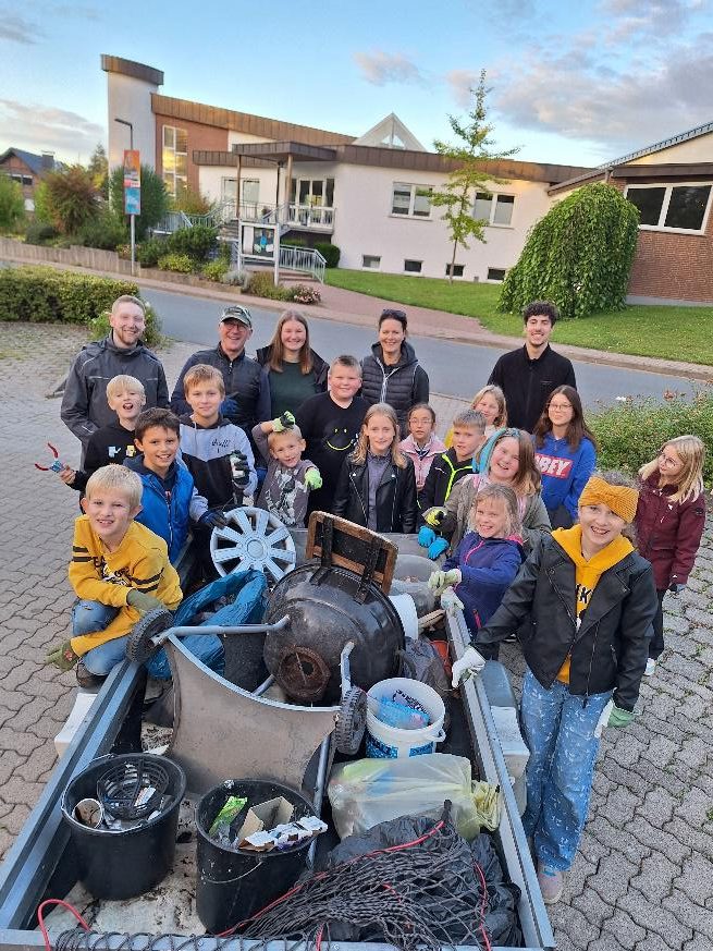 15 Kinder und 6 Mitarbeiter (Victor hat das Bild gemacht) suchten von Zigarettenstummeln bis hin zu einem Grill alles auf, was nicht in unsere schöne Natur gehörte. Ziel war es, den Kindern aufzuzeigen, Gottes Schöpfung zu achten und zu ehren, und alle Beteiligten zu sensibilisieren, dass Müll in einen Mülleimer gehört und nicht in den Straßengraben, unseren Wald oder auf den Gehweg geworfen wird. Müll? Nicht mit uns! Jungschar mal anders Es hat allen sehr viel Spaß gemacht, und das Ergebnis konnte sich sehen lassen. In 90 Minuten hatten wir einen Anhänger voll Müll aufgesammelt, den Andreas kostenlos über den Bauhof Extertal entsorgen durfte. Auch die dortigen Mitarbeiter haben sich sehr darüber gefreut, gemäß dem Motto „Kleine Hände- große Wirkung.“