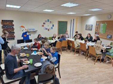 Nach dem Essen trafen wir uns im Plenum, um in unserer Bibeltextreihe weiter auf Mose zu hören. Gott beauftragte Mose, sein Volk vor dem Pharao zu retten, doch Mose hatte ziemlich große Angst davor, den Pharao um die Freilassung seines Volkes zu bitten. Gott stellte ihm seinen Bruder Aaron zur Seite und machte Mose klar: Ich nehme dich mit deiner Angst ernst. Ein starkes Thema für unsere Kids: Auch wir müssen keine Superhelden sein und können auf Gottes Unterstützung zählen.